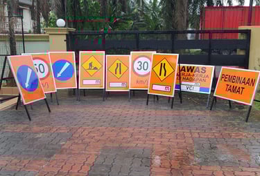 Durable signs designed to attract road-users.